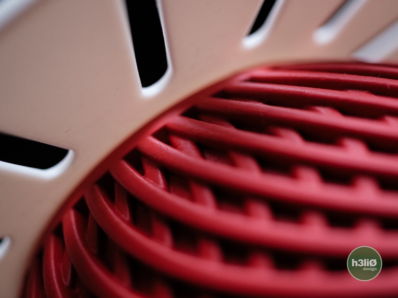 «Lámpara de diseño elegante con formas redondeadas y diseño estriado, impresa en 3D. Fabricada en PLA y PETG con acabado bicolor(rojo y blanco). La imagen muestra la combinación de blanco y rojo. ¡Consulta para conocer más opciones de colores!»
