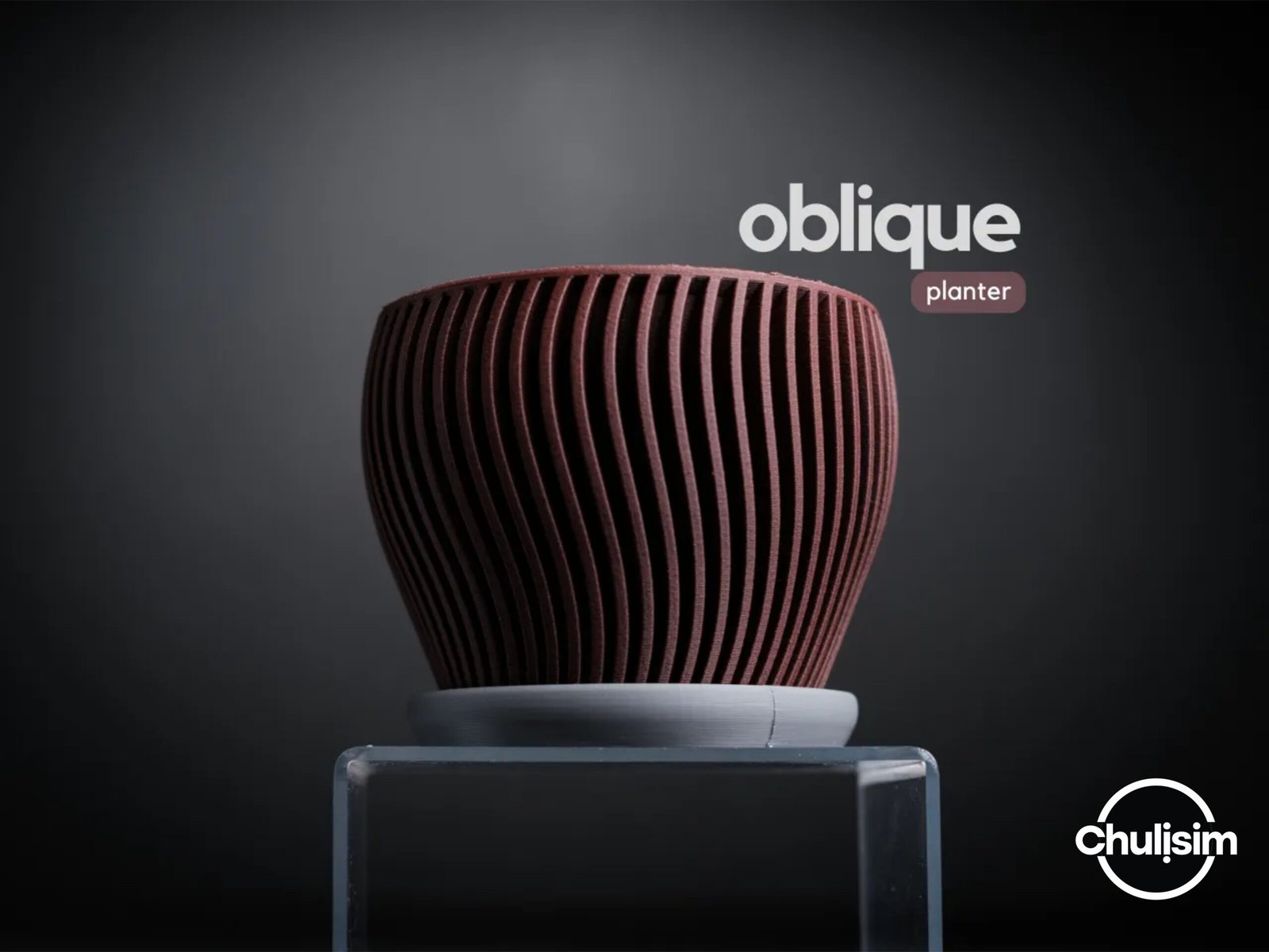 El macetero Oblique fusiona funcionalidad y diseño contemporáneo, fabricado en PLA sostenible para realzar tus plantas con un estilo único.